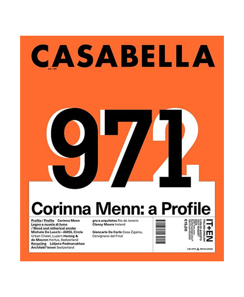 Lucia Gratz, “Archetyp am Bergsee”, werk, bauen + wohnen, no. 10 (2025) Tina Cieslik, Clementine Hegner-van Rooden, “Das wandelbare Haus”, Tec 21, 18 (2025) Francesca Chiorino, “Corinna Menn: a Profile. Progetti recenti / recent projects”, CASABELLA, 971/972 (2025) Niklas Nalbach, “Holzstabwerk im Winterschlaf”, Hochparterre, 5 (2025) |